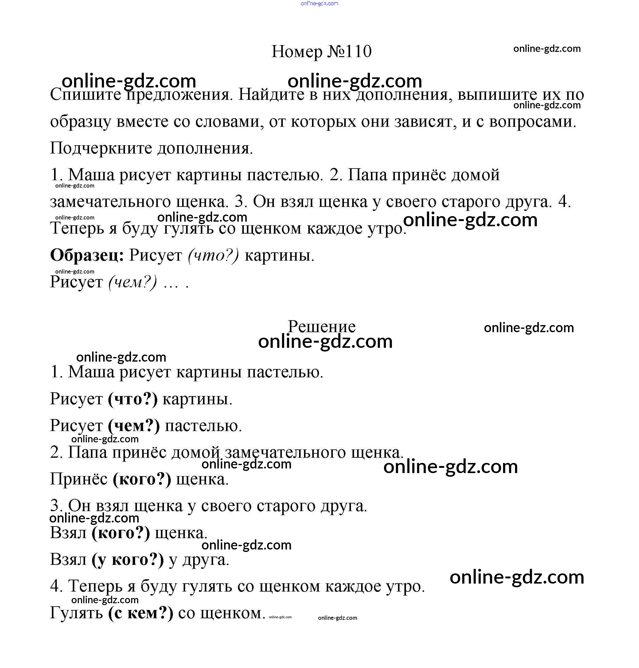 Готовые домашние задания по Русскому языку за 4 класс Учебник Климанова, Бабушкина Перспектива 2014 - Часть 1 110