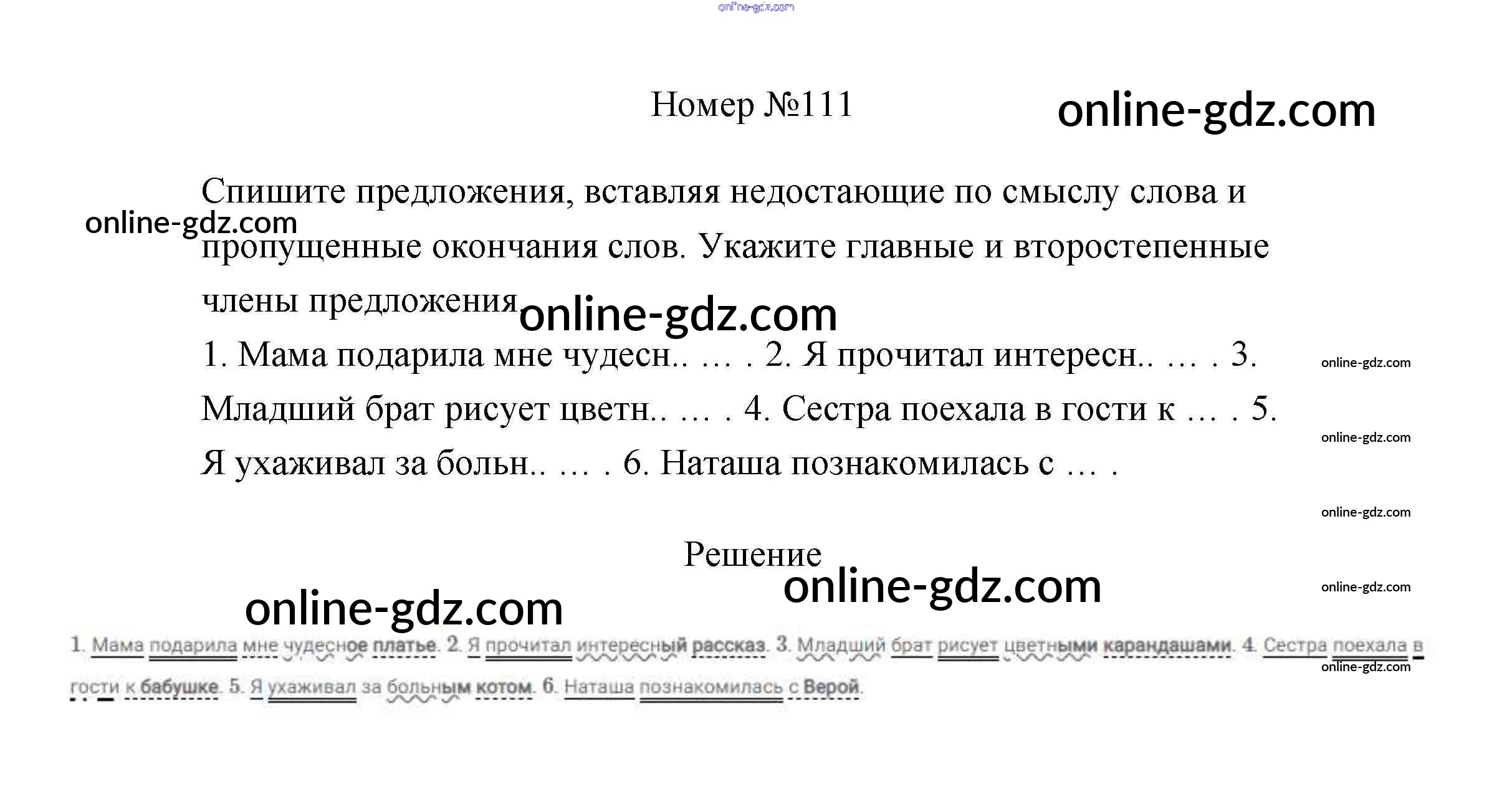 Готовые домашние задания по Русскому языку за 4 класс Учебник Климанова, Бабушкина Перспектива 2014 - Часть 1 111