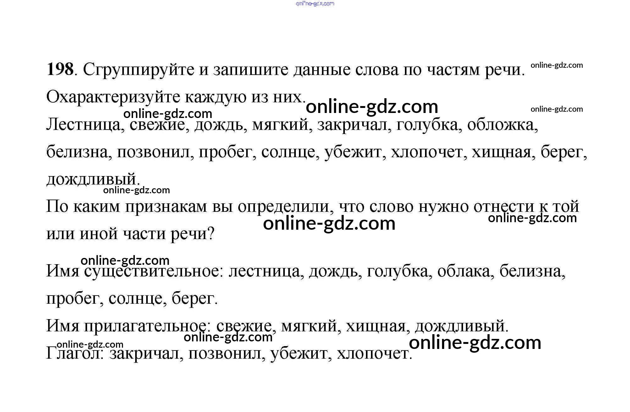 Готовые домашние задания по Русскому языку за 4 класс Учебник Климанова, Бабушкина Перспектива 2014 - Часть 1 198