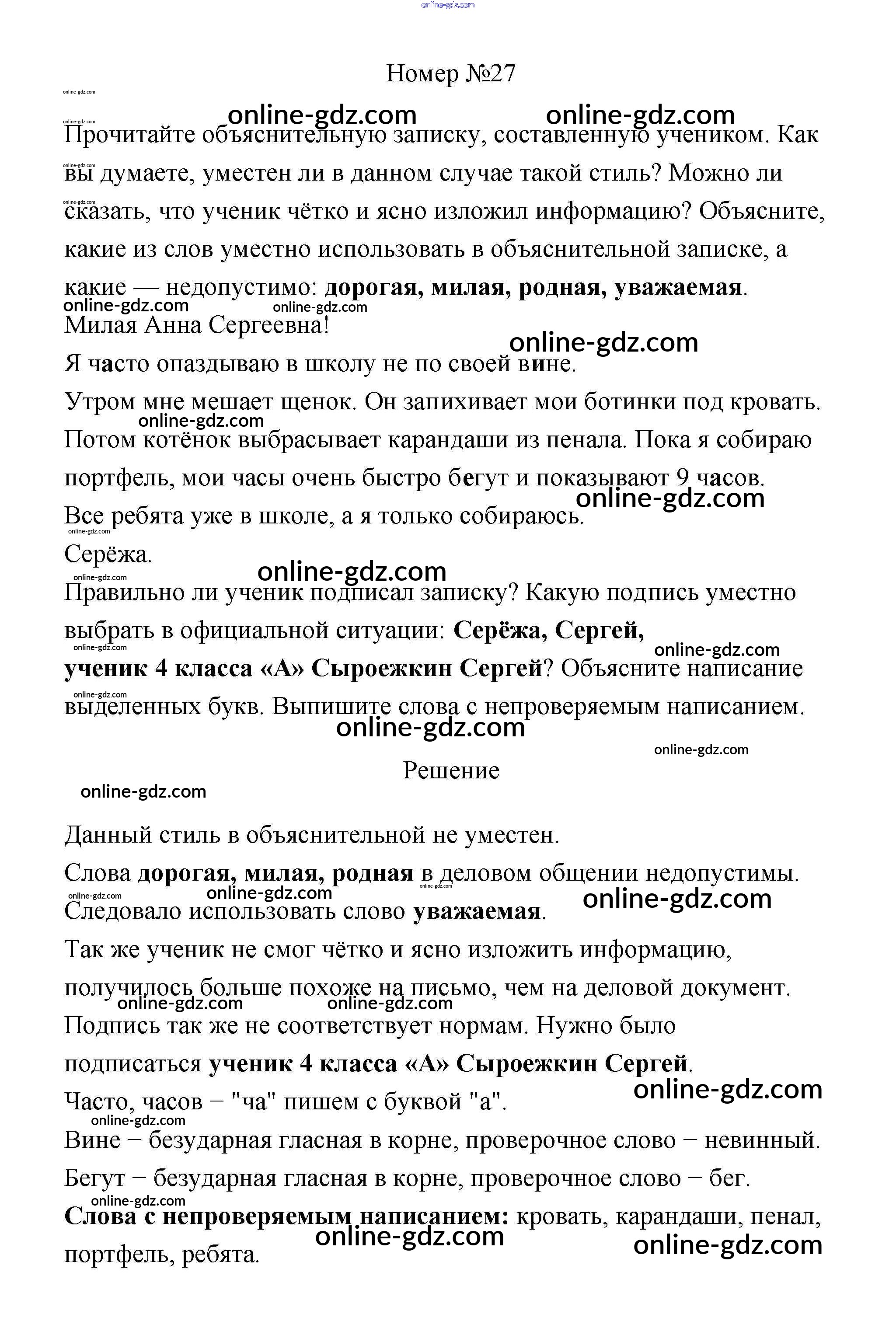 Готовые домашние задания по Русскому языку за 4 класс Учебник Климанова, Бабушкина Перспектива 2014 - Часть 1 27