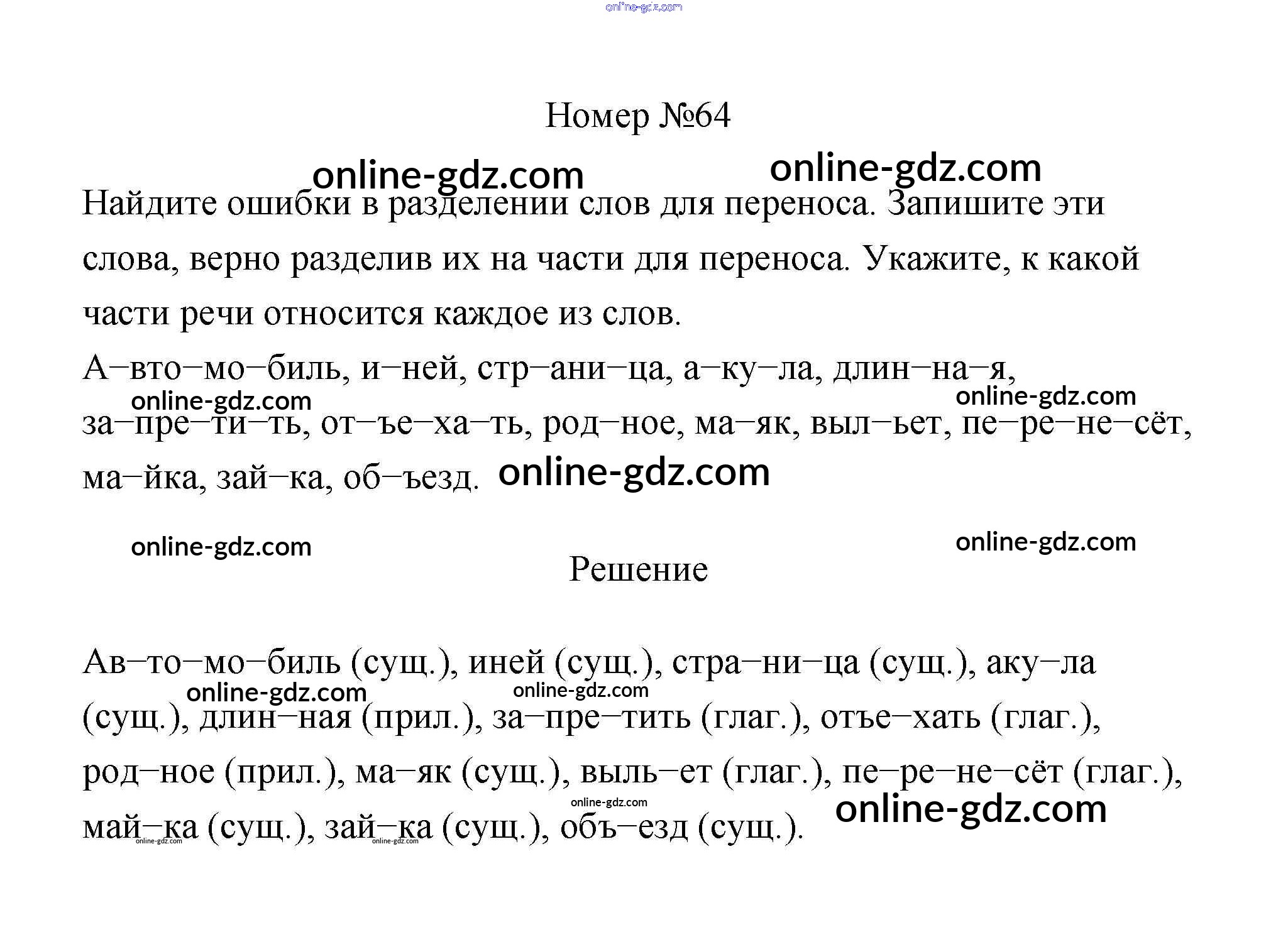 Готовые домашние задания по Русскому языку за 4 класс Учебник Климанова, Бабушкина Перспектива 2014 - Часть 1 64