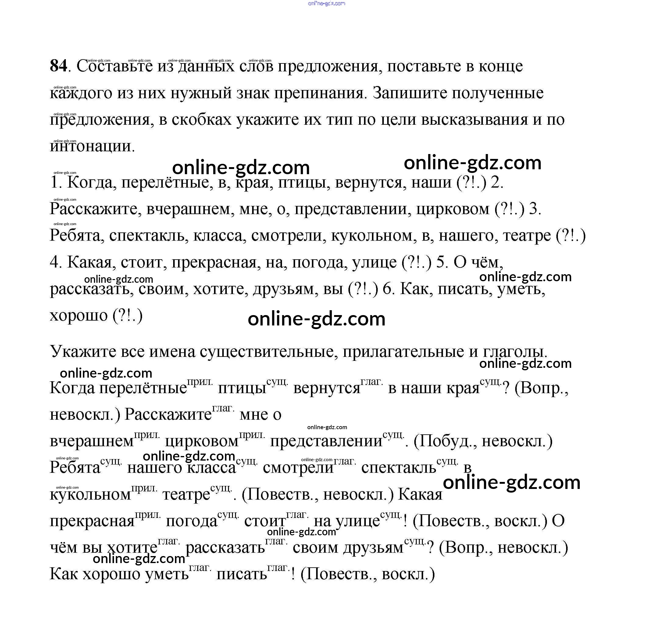 Готовые домашние задания по Русскому языку за 4 класс Учебник Климанова, Бабушкина Перспектива 2014 - Часть 1 84