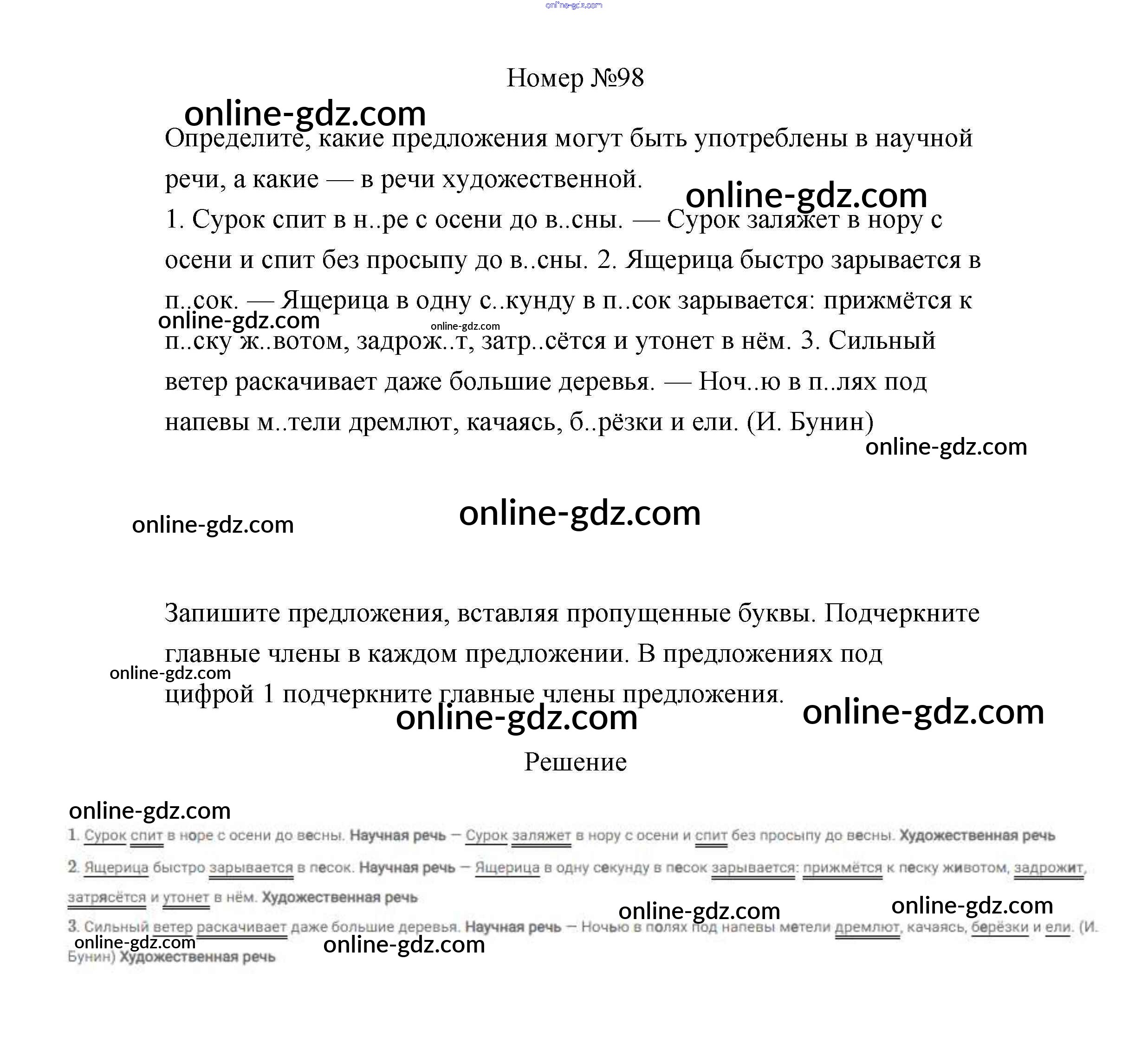 Готовые домашние задания по Русскому языку за 4 класс Учебник Климанова, Бабушкина Перспектива 2014 - Часть 1 98