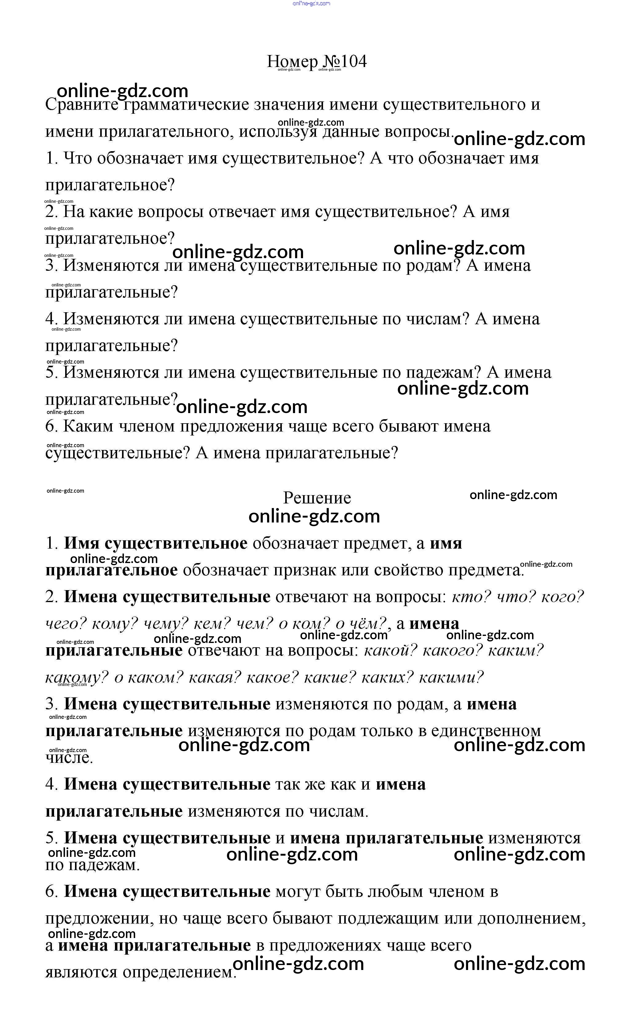 Готовые домашние задания по Русскому языку за 4 класс Учебник Климанова, Бабушкина Перспектива 2014 - Часть 2 104