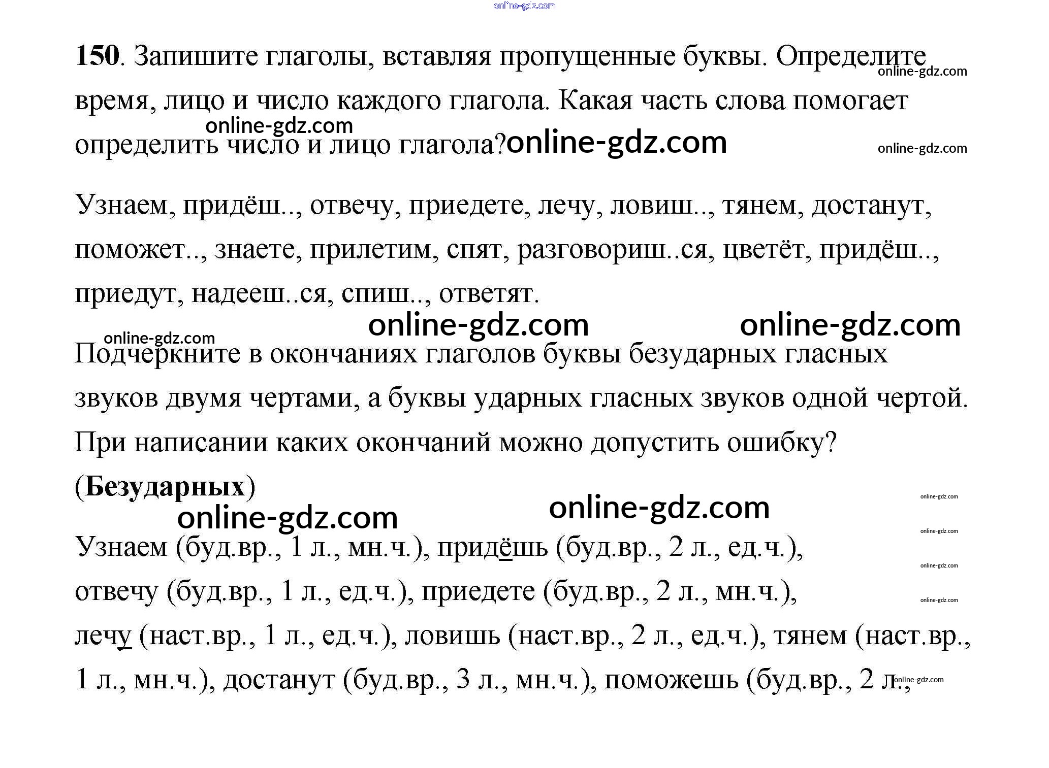 Готовые домашние задания по Русскому языку за 4 класс Учебник Климанова, Бабушкина Перспектива 2014 - Часть 2 150