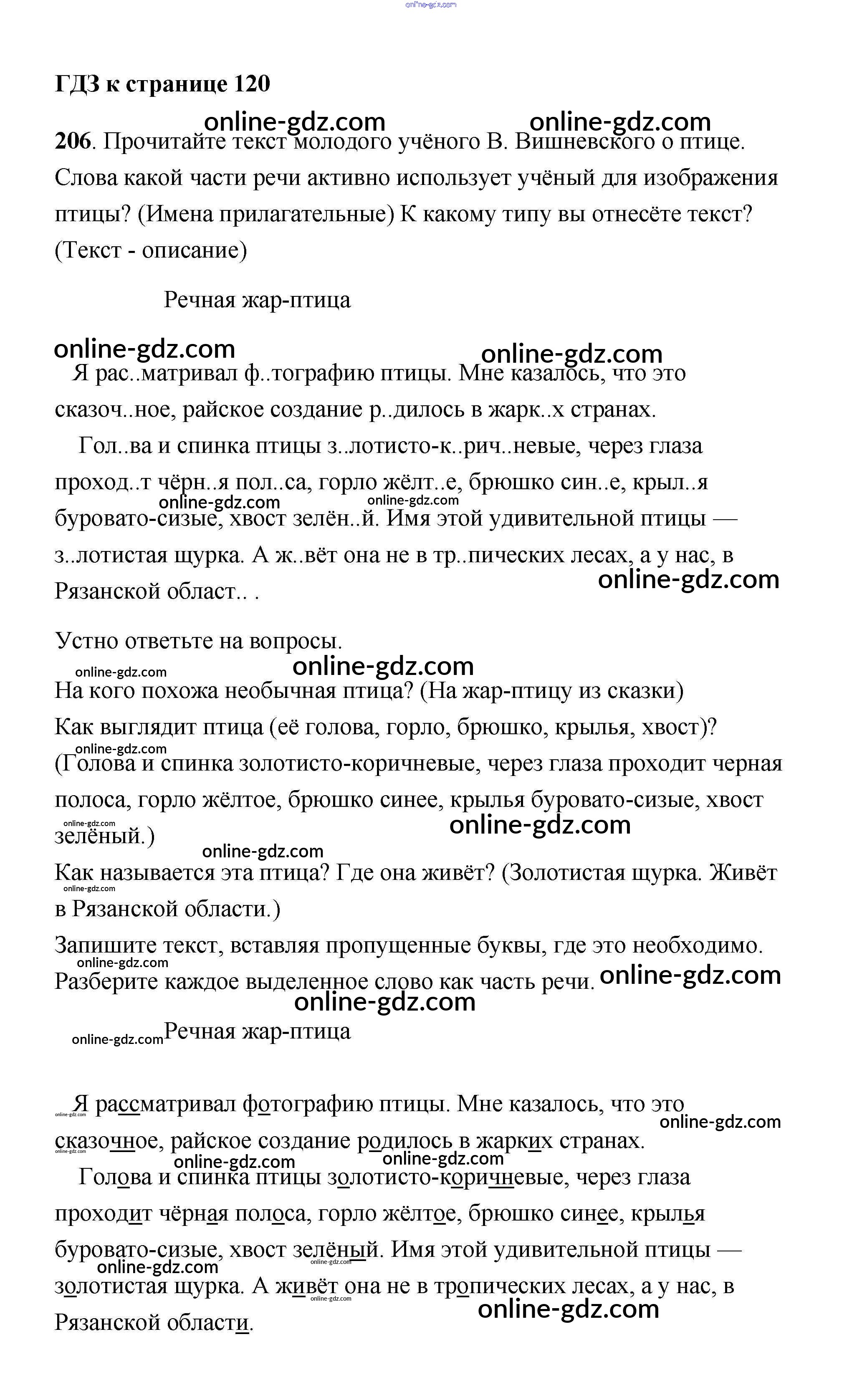 Готовые домашние задания по Русскому языку за 4 класс Учебник Климанова, Бабушкина Перспектива 2014 - Часть 2 206