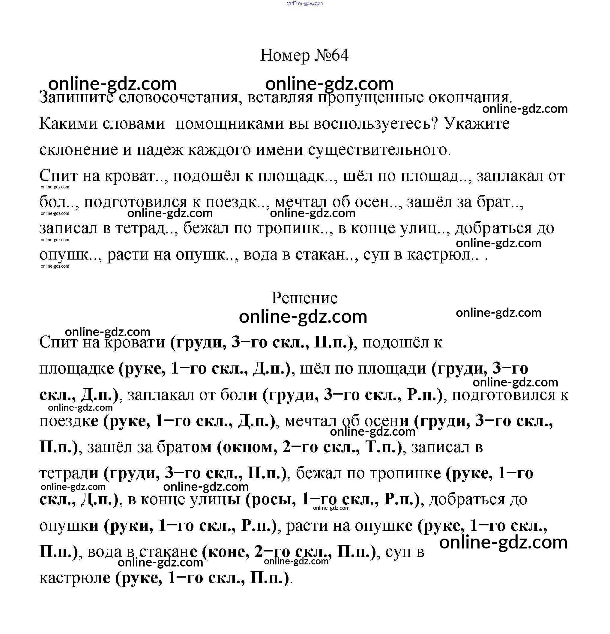 Готовые домашние задания по Русскому языку за 4 класс Учебник Климанова, Бабушкина Перспектива 2014 - Часть 2 64