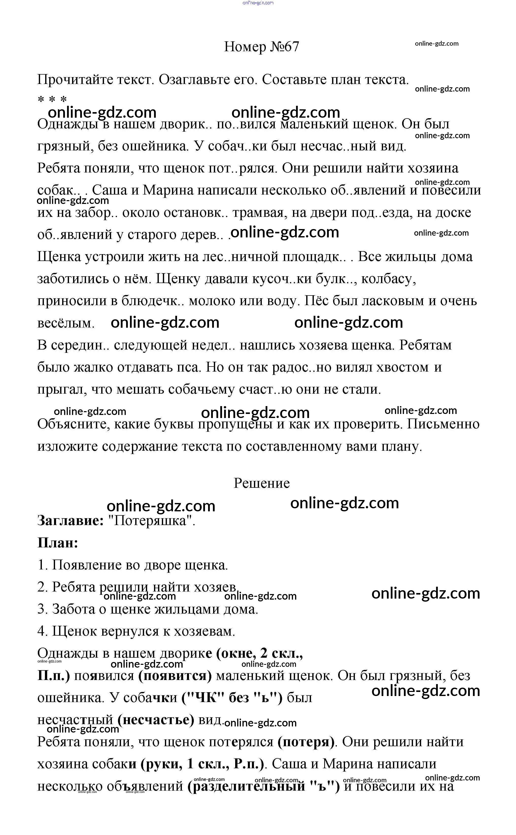 Готовые домашние задания по Русскому языку за 4 класс Учебник Климанова, Бабушкина Перспектива 2014 - Часть 2 67