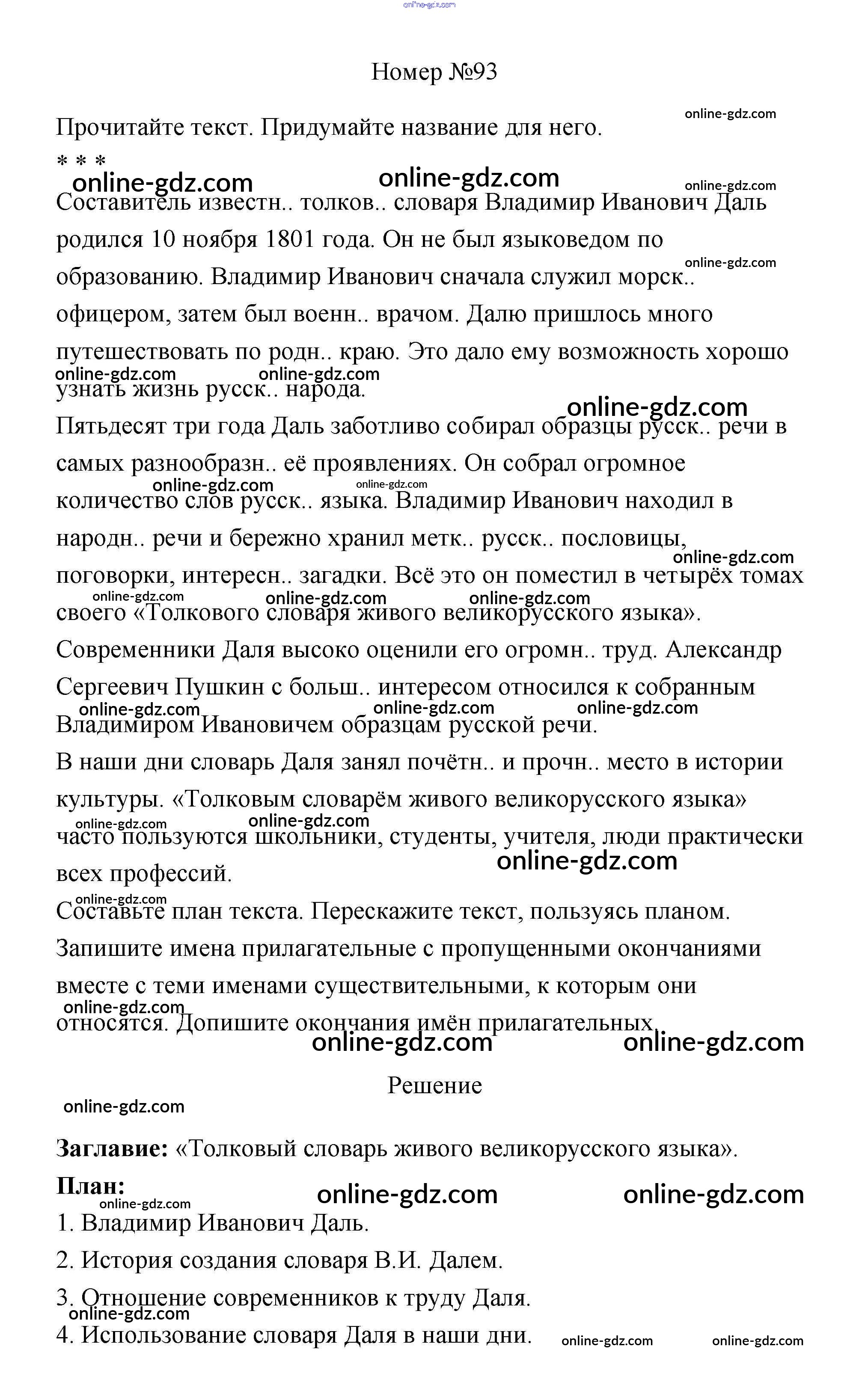 Готовые домашние задания по Русскому языку за 4 класс Учебник Климанова, Бабушкина Перспектива 2014 - Часть 2 93