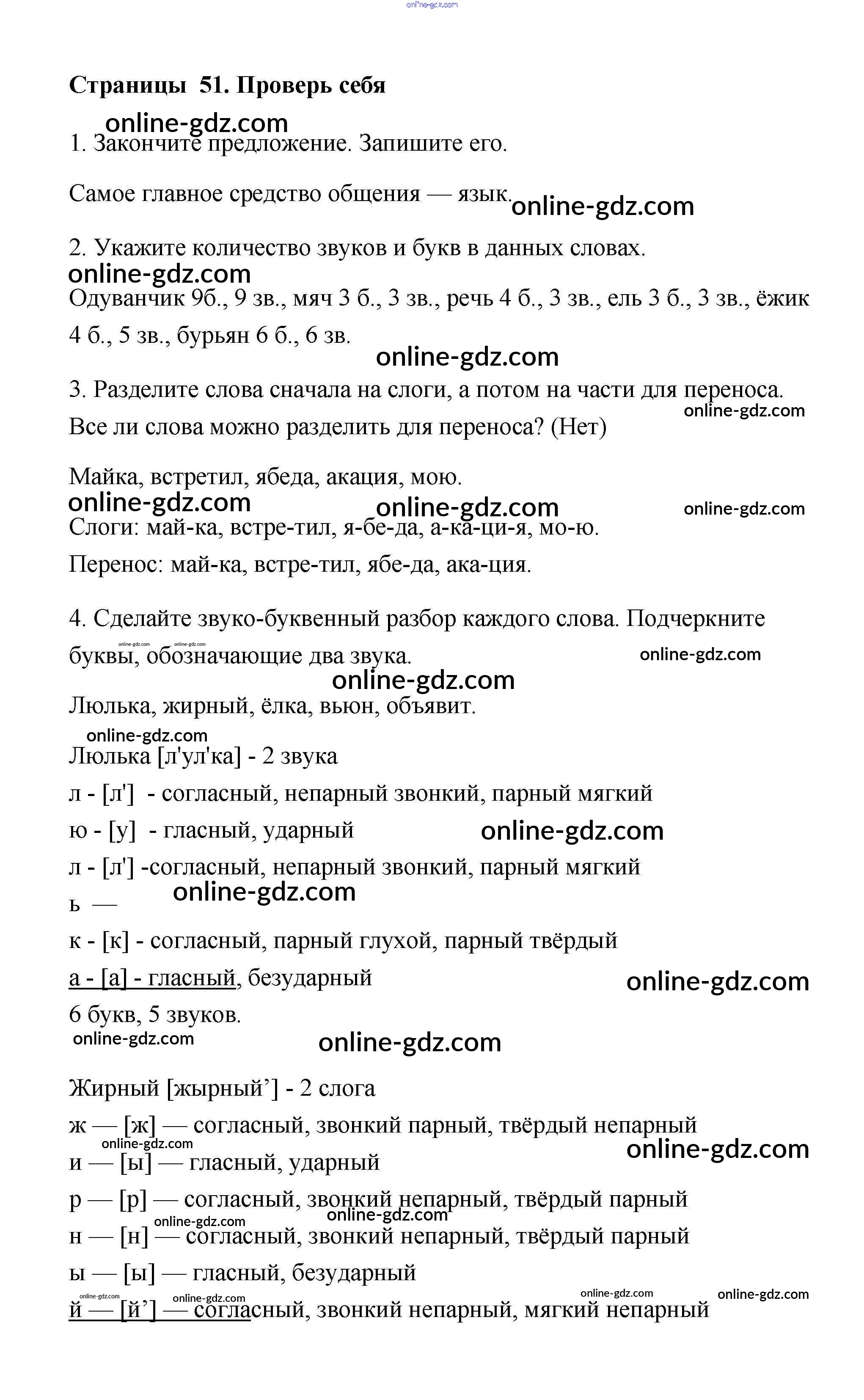 Готовые домашние задания по Русскому языку за 4 класс Учебник Климанова, Бабушкина Перспектива 2014 - Часть 1. Страницы Проверь себя 51