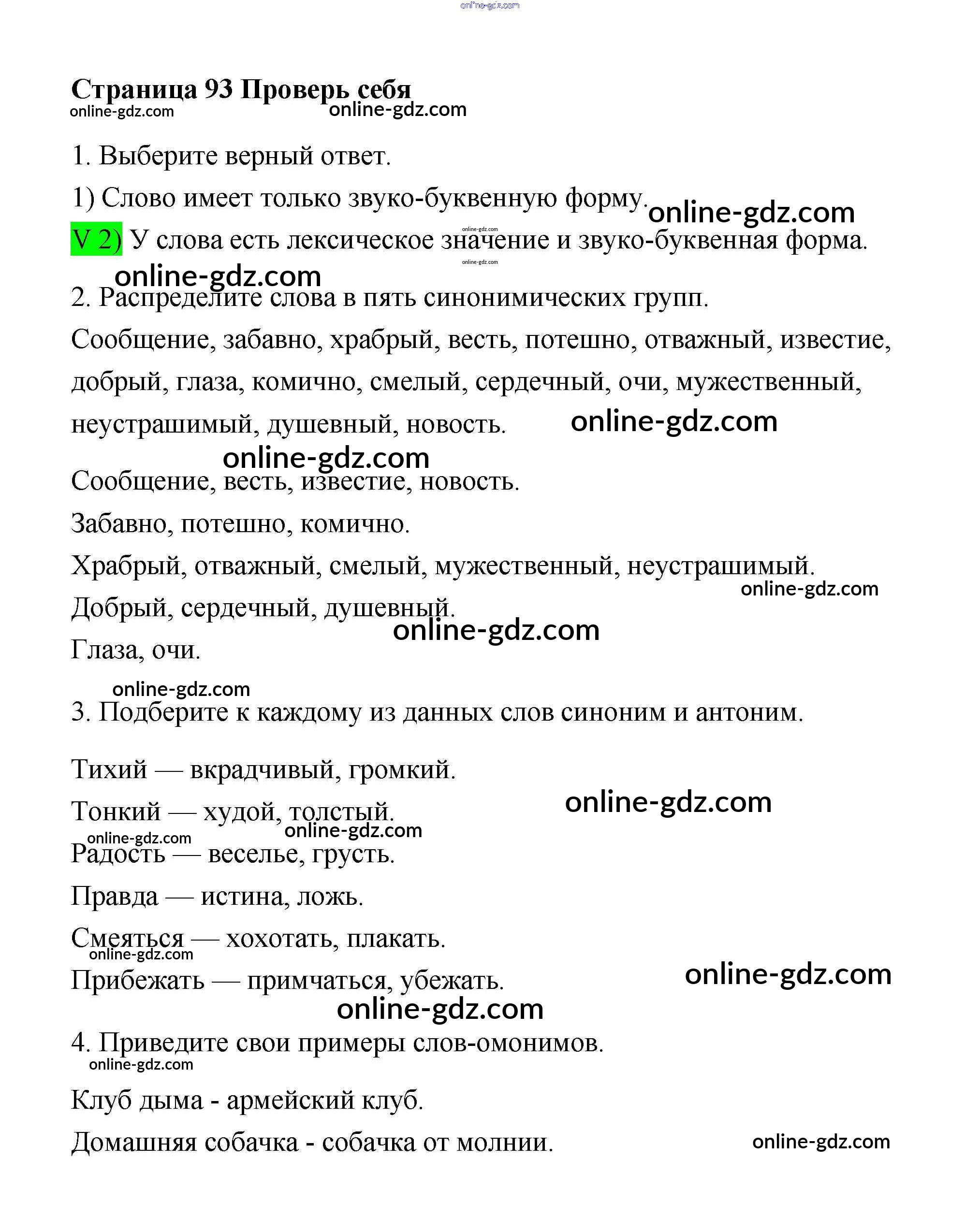 проверь себя / часть 1. страница / 93