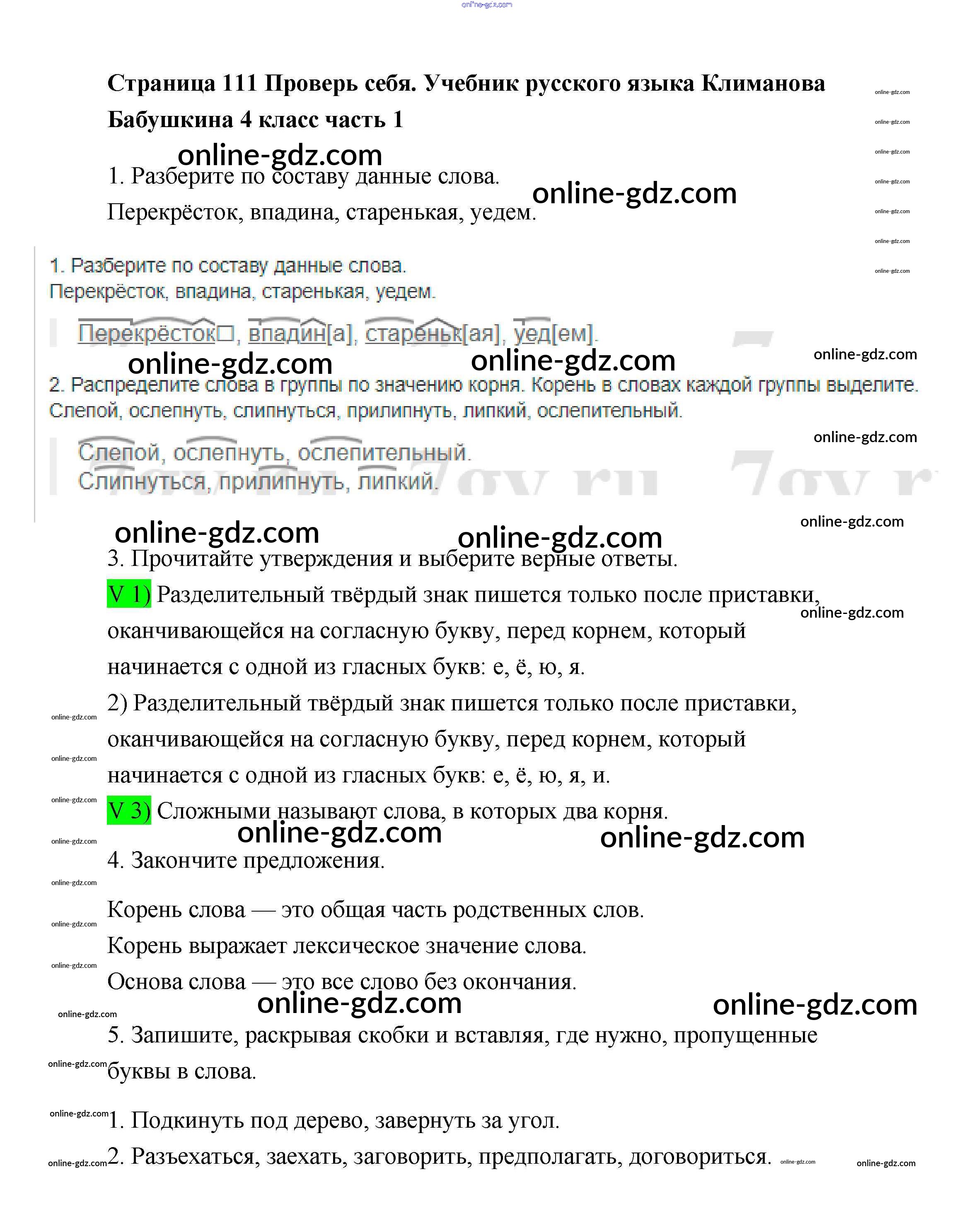 Готовые домашние задания по Русскому языку за 4 класс Учебник Климанова, Бабушкина Перспектива 2014 - Часть 1. Страницы Проверь себя 111