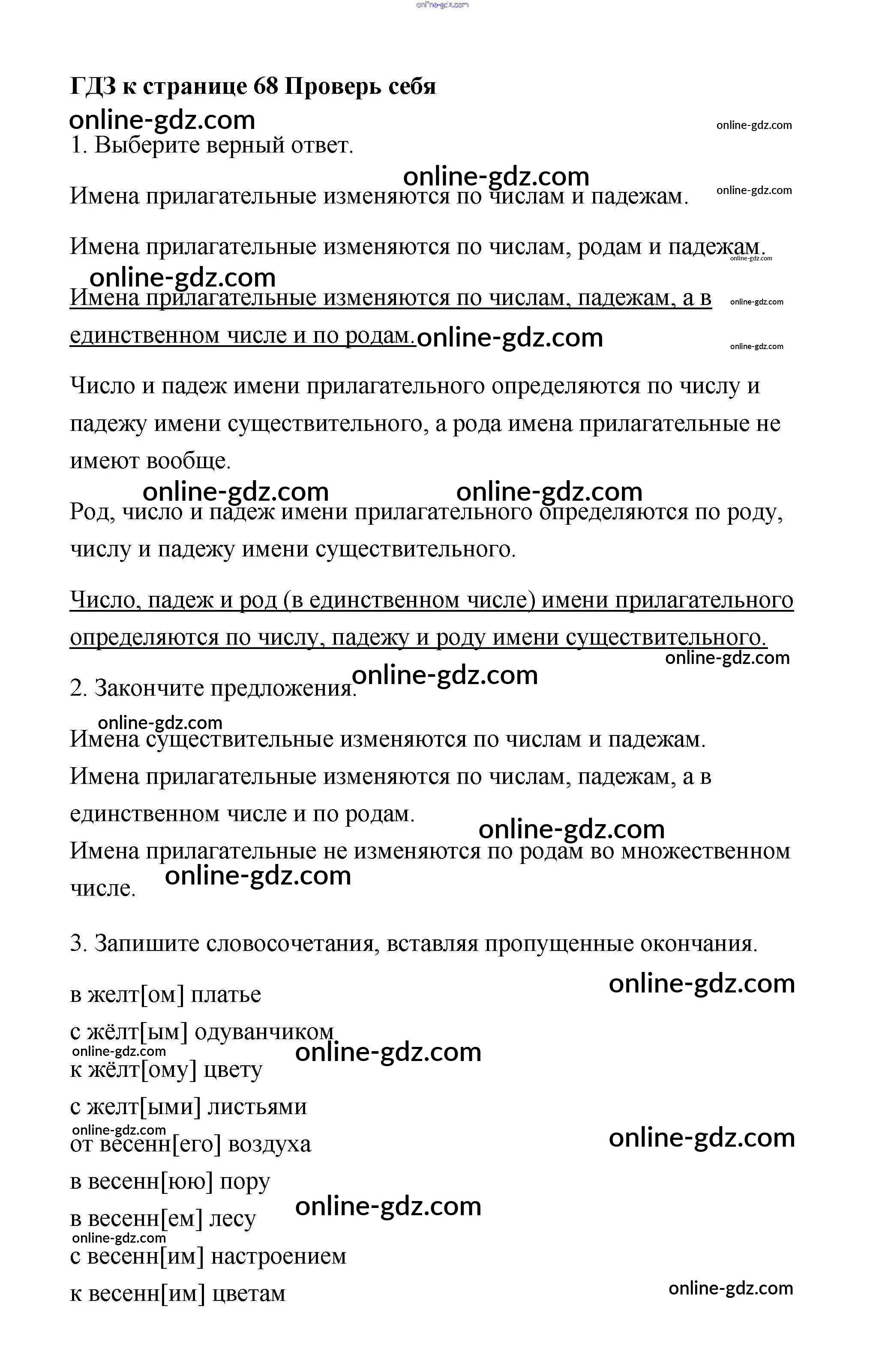 Готовые домашние задания по Русскому языку за 4 класс Учебник Климанова, Бабушкина Перспектива 2014 - Часть 2. Страницы Проверь себя 68