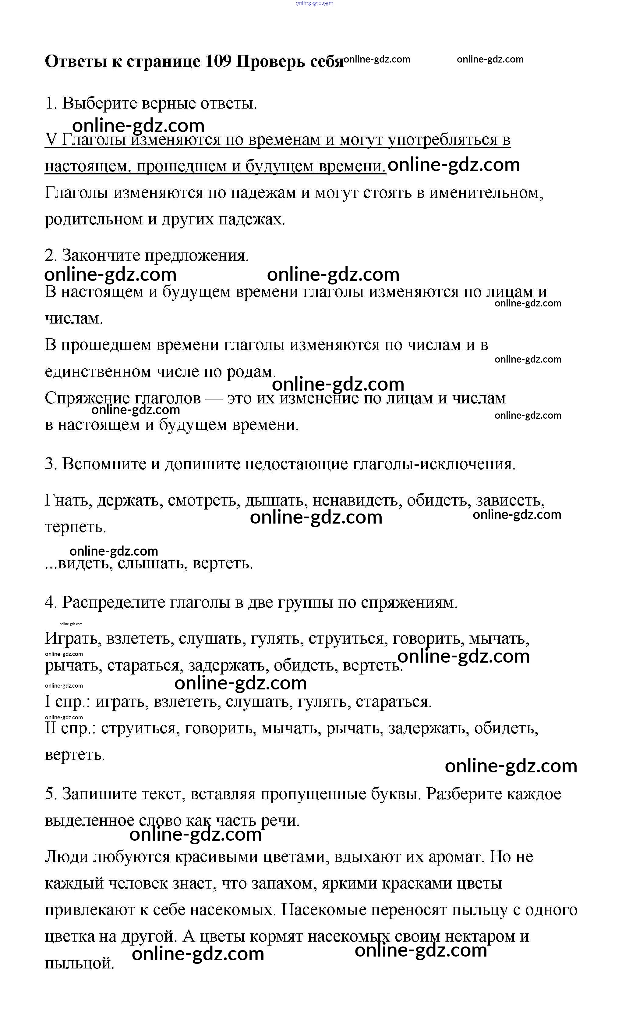 Готовые домашние задания по Русскому языку за 4 класс Учебник Климанова, Бабушкина Перспектива 2014 - Часть 2. Страницы Проверь себя 109