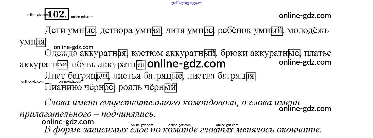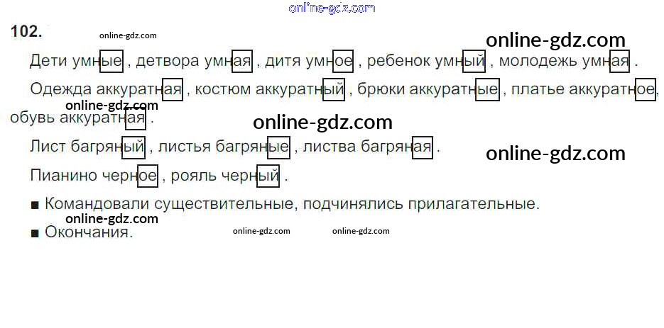 Готовые домашние задания по Русскому языку за 4 класс Учебник Соловейчик, Кузьменко Гармония 2015 - Часть 1. Упражнения 102