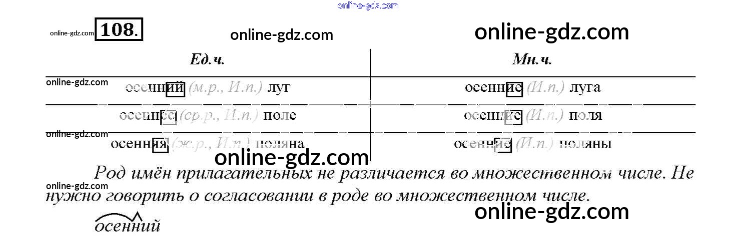 Готовые домашние задания по Русскому языку за 4 класс Учебник Соловейчик, Кузьменко Гармония 2015 - Часть 1. Упражнения 108