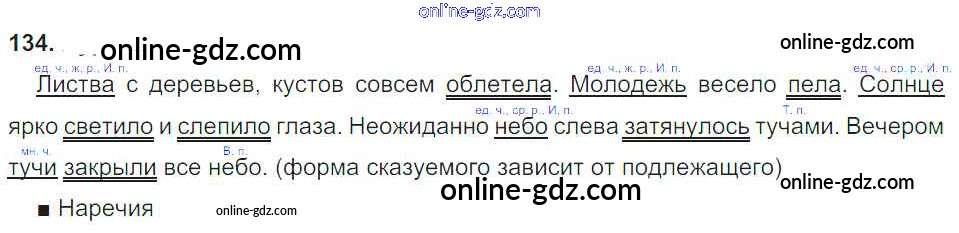 Готовые домашние задания по Русскому языку за 4 класс Учебник Соловейчик, Кузьменко Гармония 2015 - Часть 1. Упражнения 134