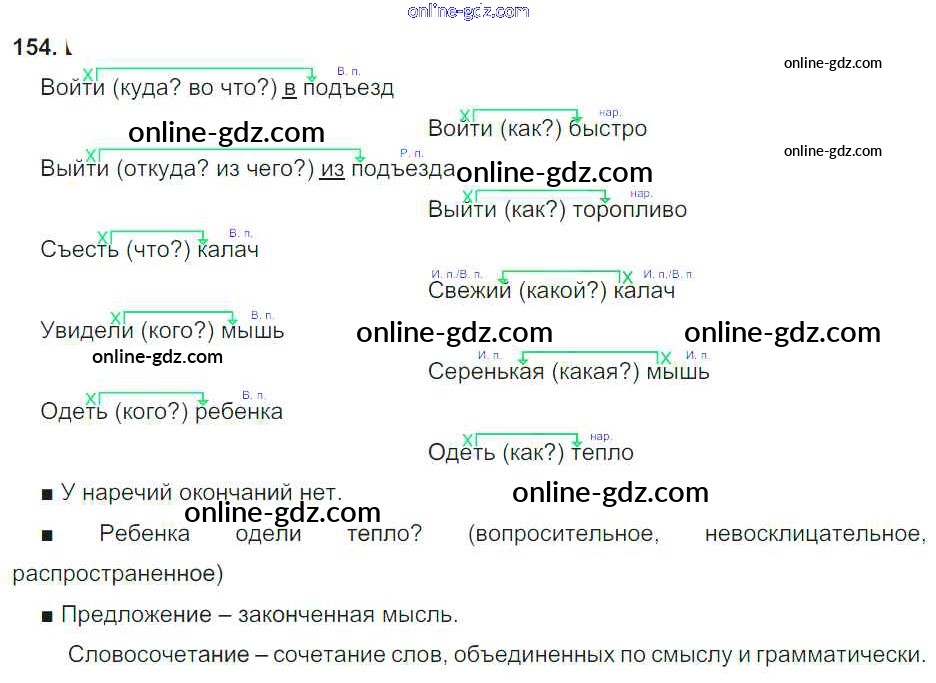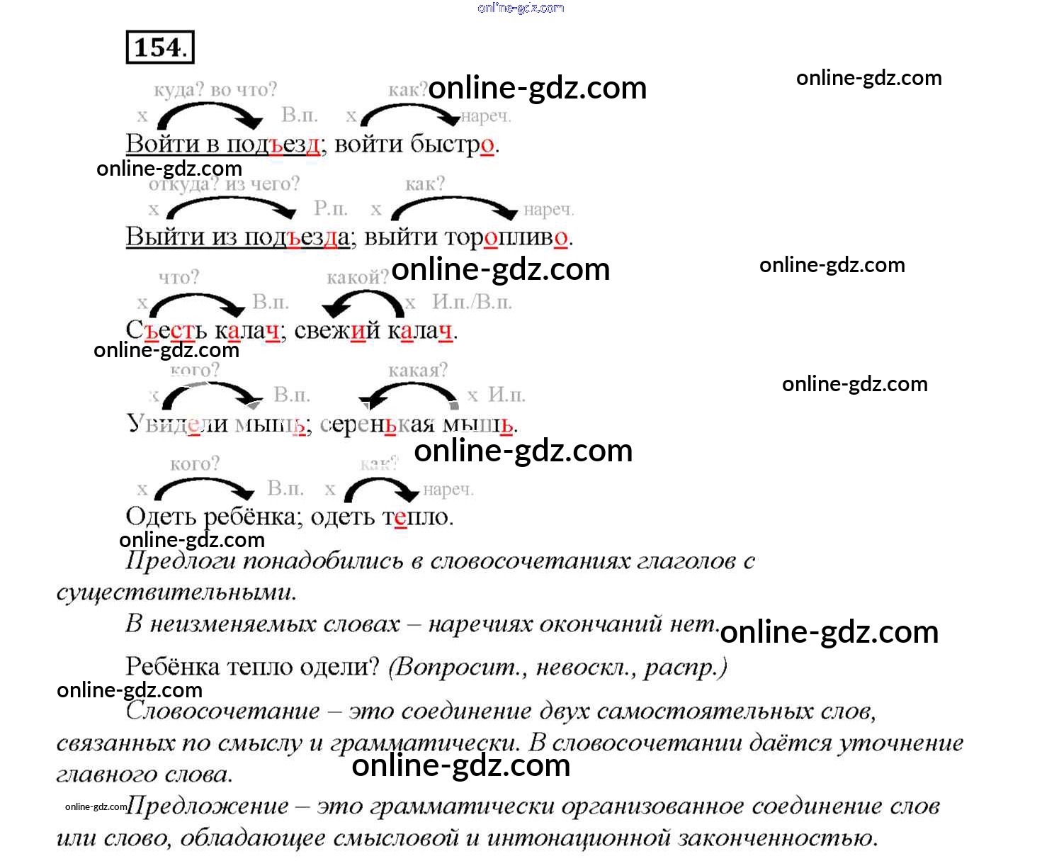 Готовые домашние задания по Русскому языку за 4 класс Учебник Соловейчик, Кузьменко Гармония 2015 - Часть 1. Упражнения 154