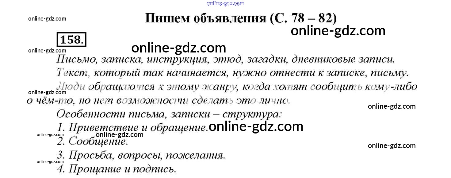 Готовые домашние задания по Русскому языку за 4 класс Учебник Соловейчик, Кузьменко Гармония 2015 - Часть 1. Упражнения 158