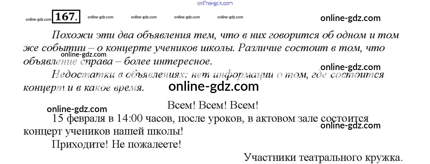 Готовые домашние задания по Русскому языку за 4 класс Учебник Соловейчик, Кузьменко Гармония 2015 - Часть 1. Упражнения 167