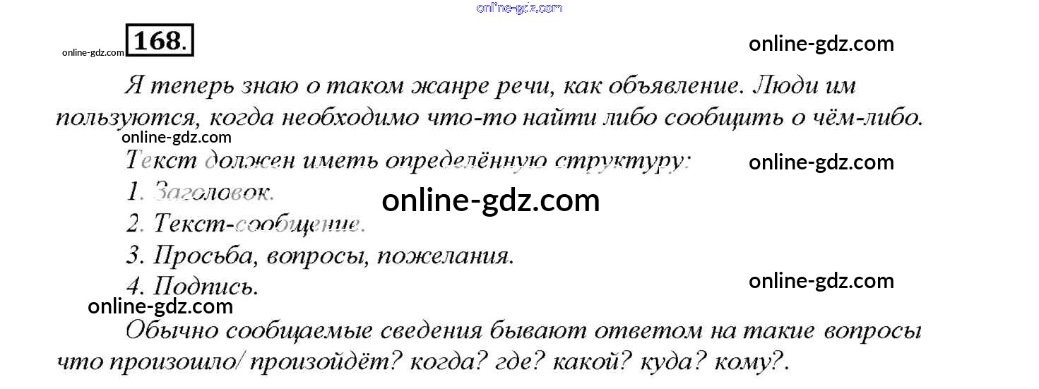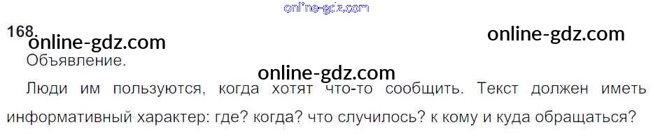 Готовые домашние задания по Русскому языку за 4 класс Учебник Соловейчик, Кузьменко Гармония 2015 - Часть 1. Упражнения 168