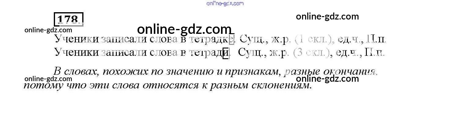 Готовые домашние задания по Русскому языку за 4 класс Учебник Соловейчик, Кузьменко Гармония 2015 - Часть 1. Упражнения 178