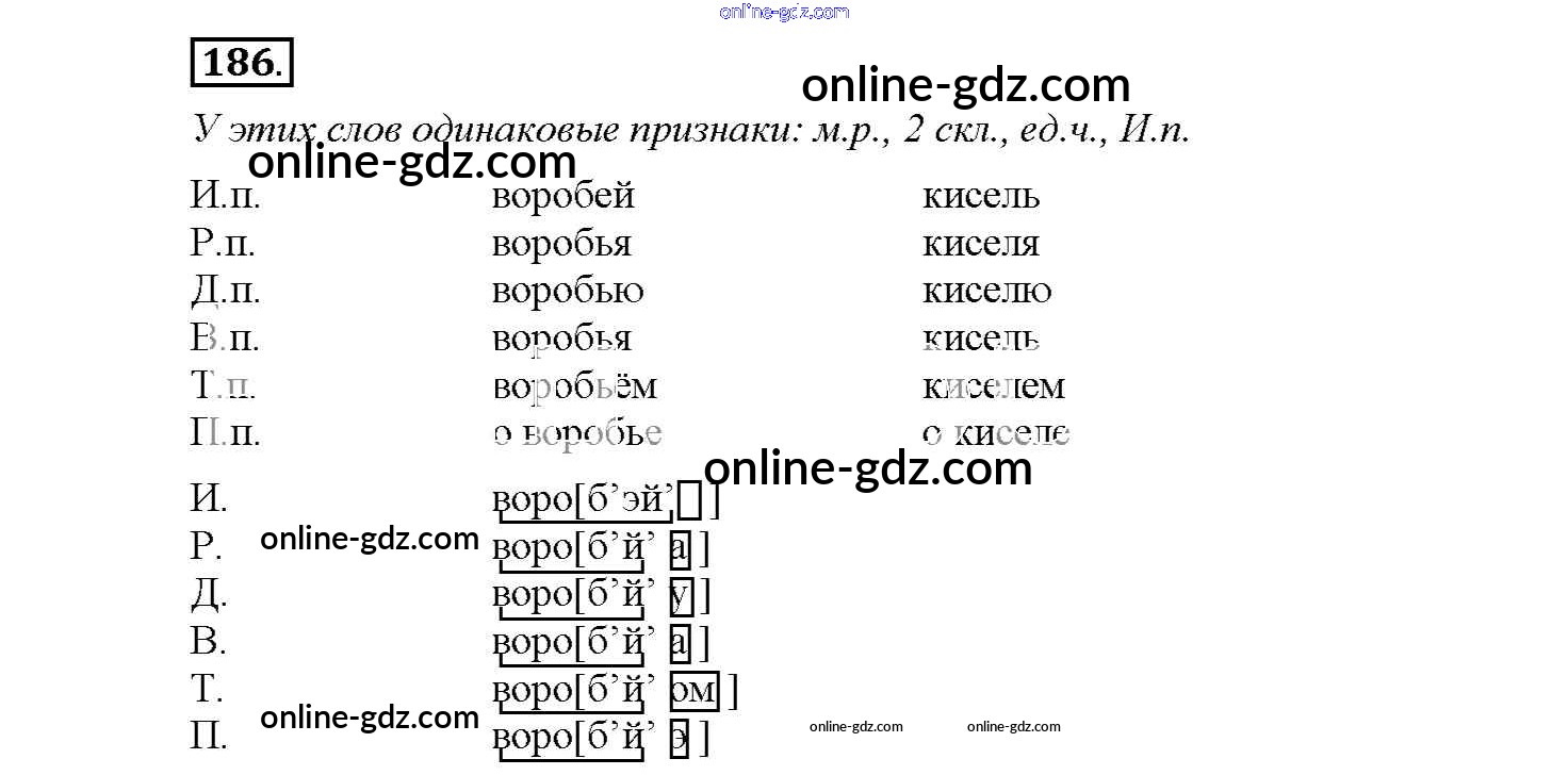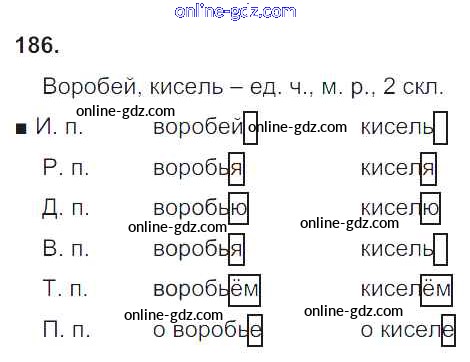 Готовые домашние задания по Русскому языку за 4 класс Учебник Соловейчик, Кузьменко Гармония 2015 - Часть 1. Упражнения 186