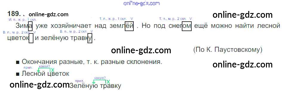 Готовые домашние задания по Русскому языку за 4 класс Учебник Соловейчик, Кузьменко Гармония 2015 - Часть 1. Упражнения 189