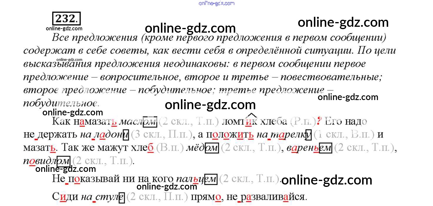 Готовые домашние задания по Русскому языку за 4 класс Учебник Соловейчик, Кузьменко Гармония 2015 - Часть 1. Упражнения 232