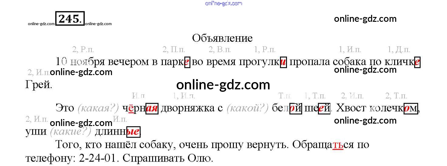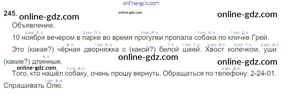 Готовые домашние задания по Русскому языку за 4 класс Учебник Соловейчик, Кузьменко Гармония 2015 - Часть 1. Упражнения 245