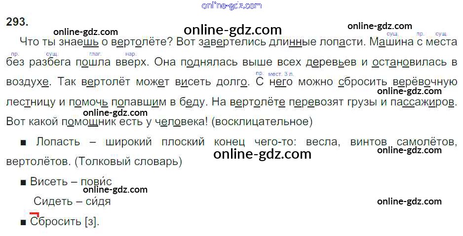 Готовые домашние задания по Русскому языку за 4 класс Учебник Соловейчик, Кузьменко Гармония 2015 - Часть 1. Упражнения 293
