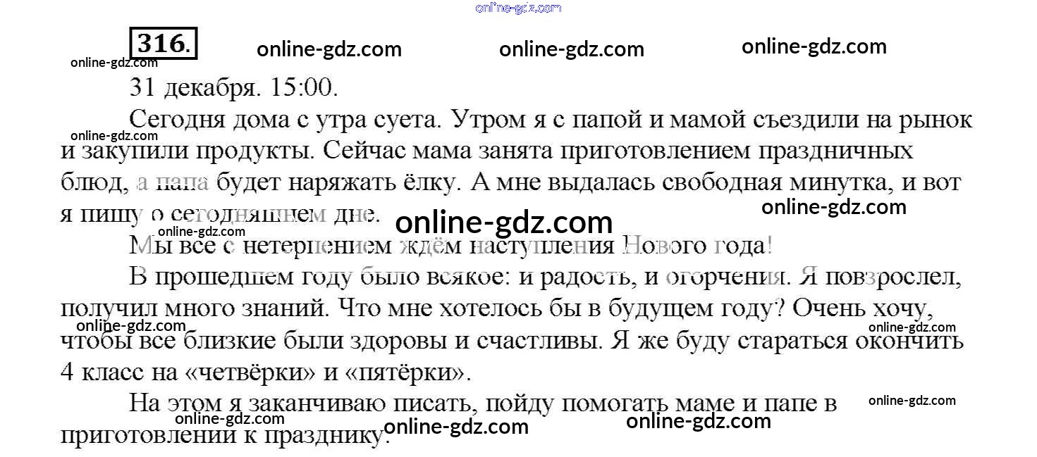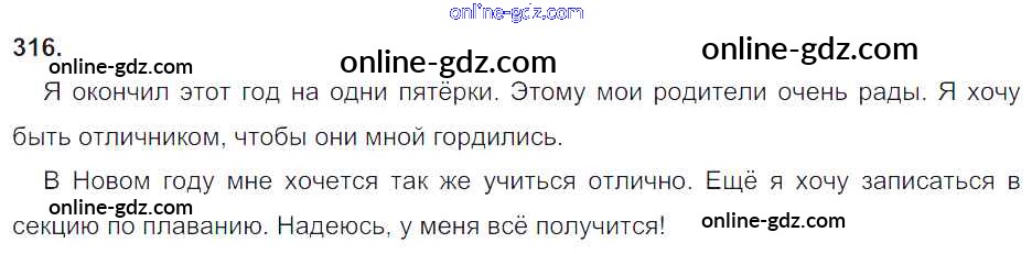 Готовые домашние задания по Русскому языку за 4 класс Учебник Соловейчик, Кузьменко Гармония 2015 - Часть 1. Упражнения 316
