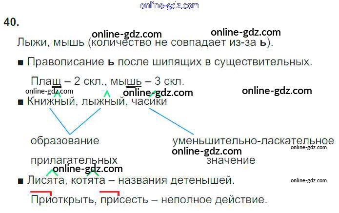 Готовые домашние задания по Русскому языку за 4 класс Учебник Соловейчик, Кузьменко Гармония 2015 - Часть 1. Упражнения 40