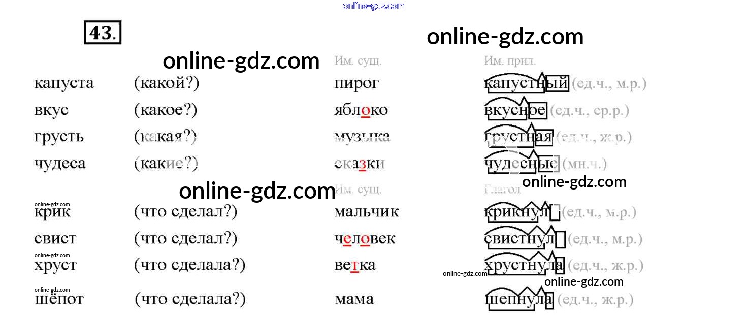 Готовые домашние задания по Русскому языку за 4 класс Учебник Соловейчик, Кузьменко Гармония 2015 - Часть 1. Упражнения 43