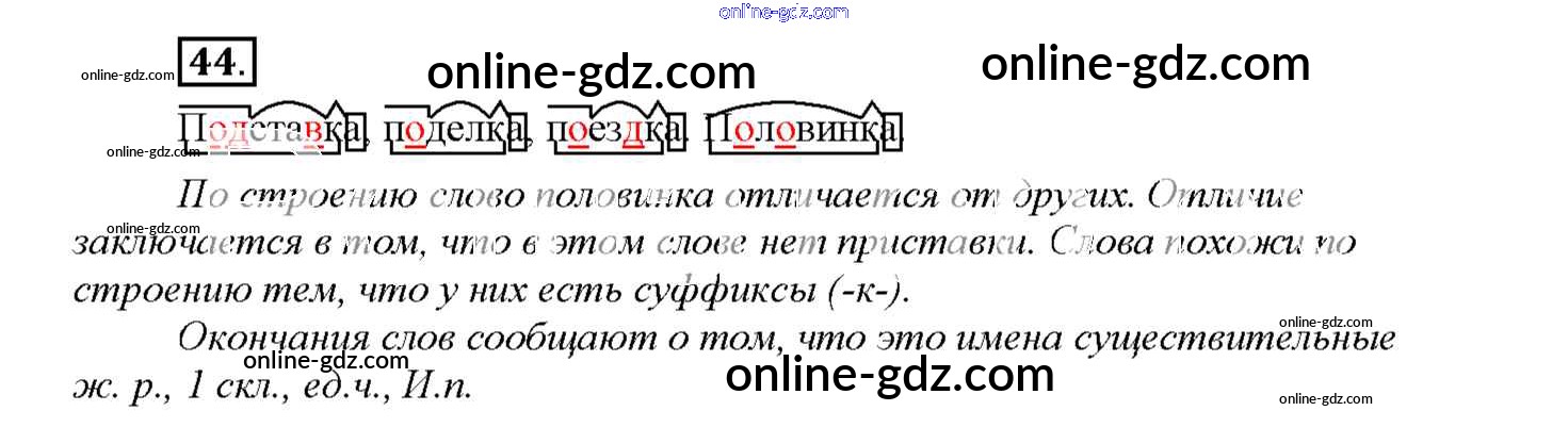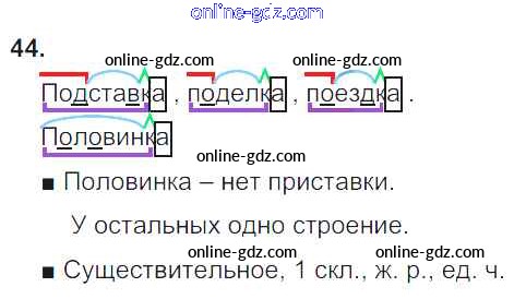 Готовые домашние задания по Русскому языку за 4 класс Учебник Соловейчик, Кузьменко Гармония 2015 - Часть 1. Упражнения 44
