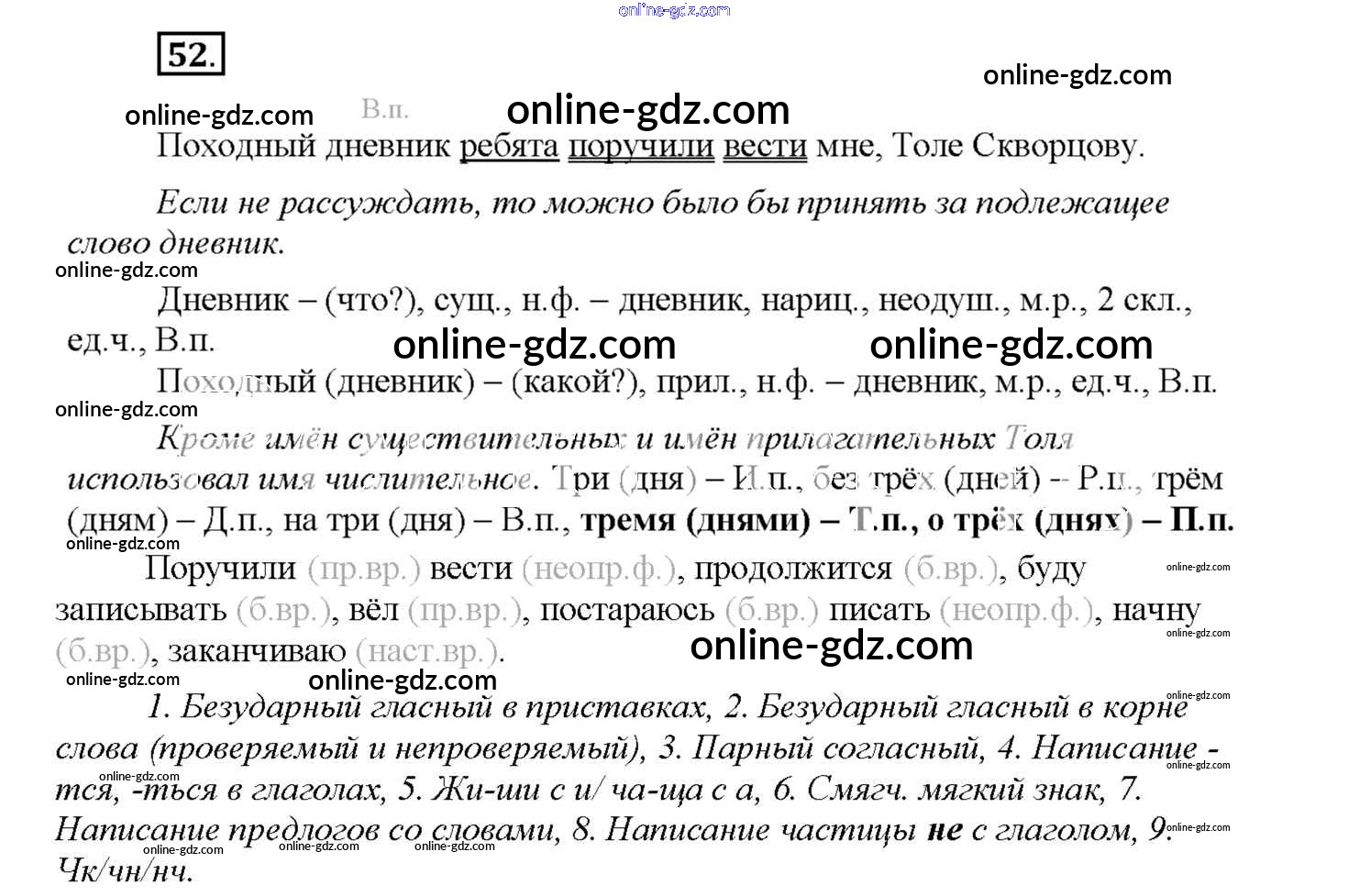 Готовые домашние задания по Русскому языку за 4 класс Учебник Соловейчик, Кузьменко Гармония 2015 - Часть 1. Упражнения 52