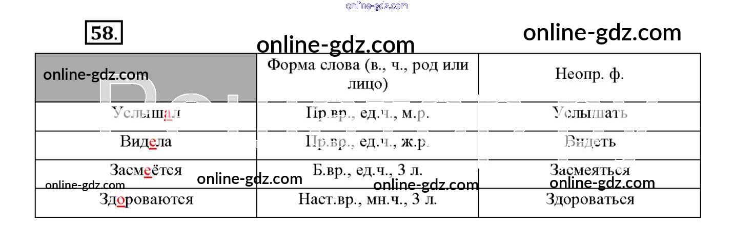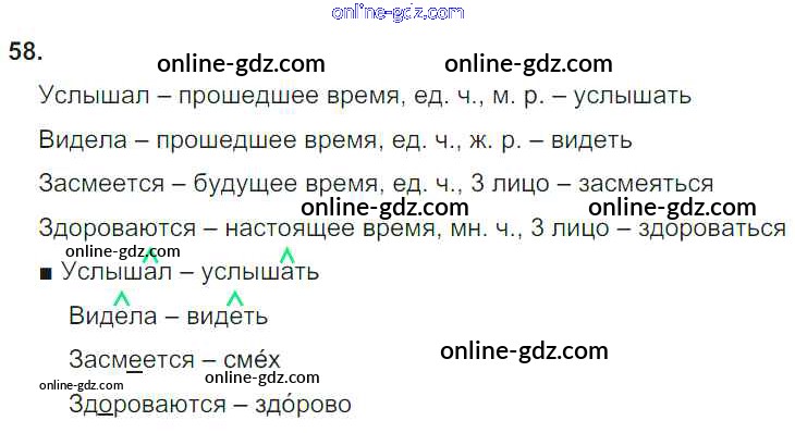Готовые домашние задания по Русскому языку за 4 класс Учебник Соловейчик, Кузьменко Гармония 2015 - Часть 1. Упражнения 58