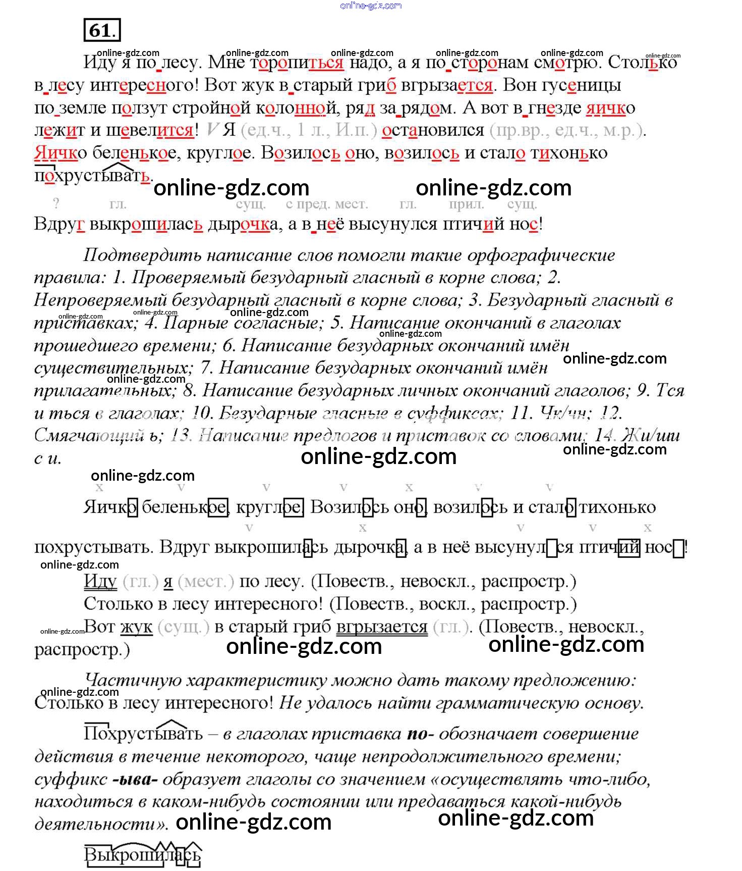 Готовые домашние задания по Русскому языку за 4 класс Учебник Соловейчик, Кузьменко Гармония 2015 - Часть 1. Упражнения 61