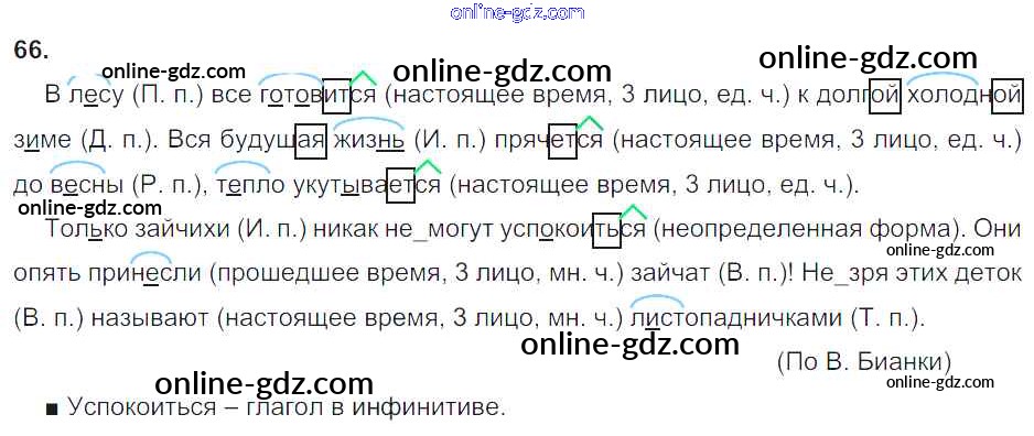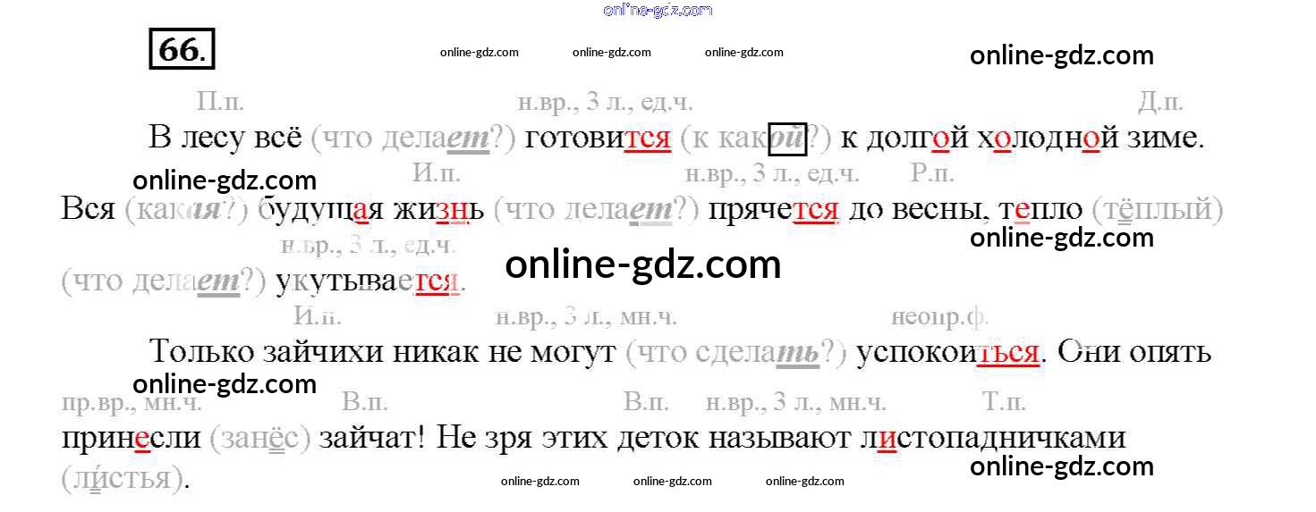 Готовые домашние задания по Русскому языку за 4 класс Учебник Соловейчик, Кузьменко Гармония 2015 - Часть 1. Упражнения 66