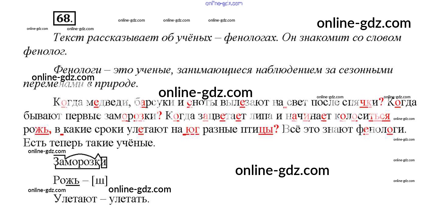Готовые домашние задания по Русскому языку за 4 класс Учебник Соловейчик, Кузьменко Гармония 2015 - Часть 1. Упражнения 68