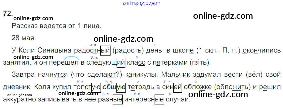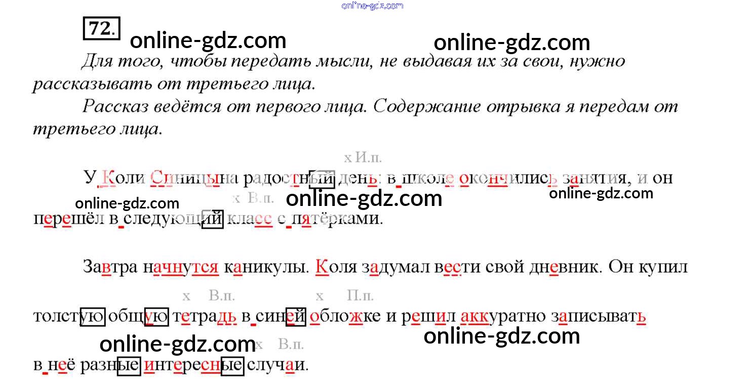 Готовые домашние задания по Русскому языку за 4 класс Учебник Соловейчик, Кузьменко Гармония 2015 - Часть 1. Упражнения 72