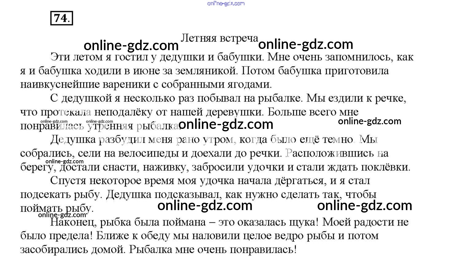 Готовые домашние задания по Русскому языку за 4 класс Учебник Соловейчик, Кузьменко Гармония 2015 - Часть 1. Упражнения 74