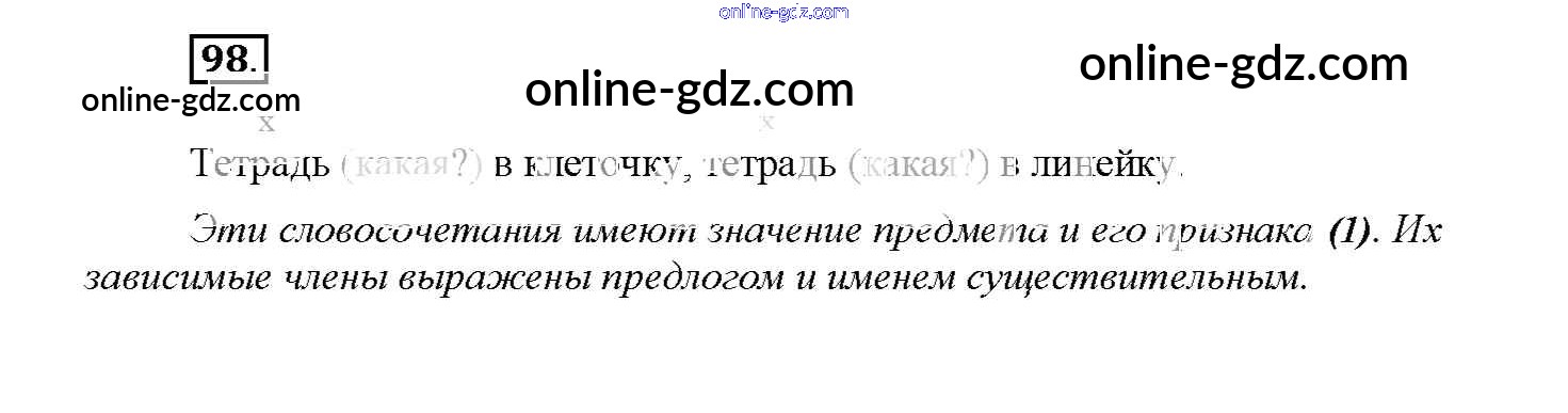 Готовые домашние задания по Русскому языку за 4 класс Учебник Соловейчик, Кузьменко Гармония 2015 - Часть 1. Упражнения 98