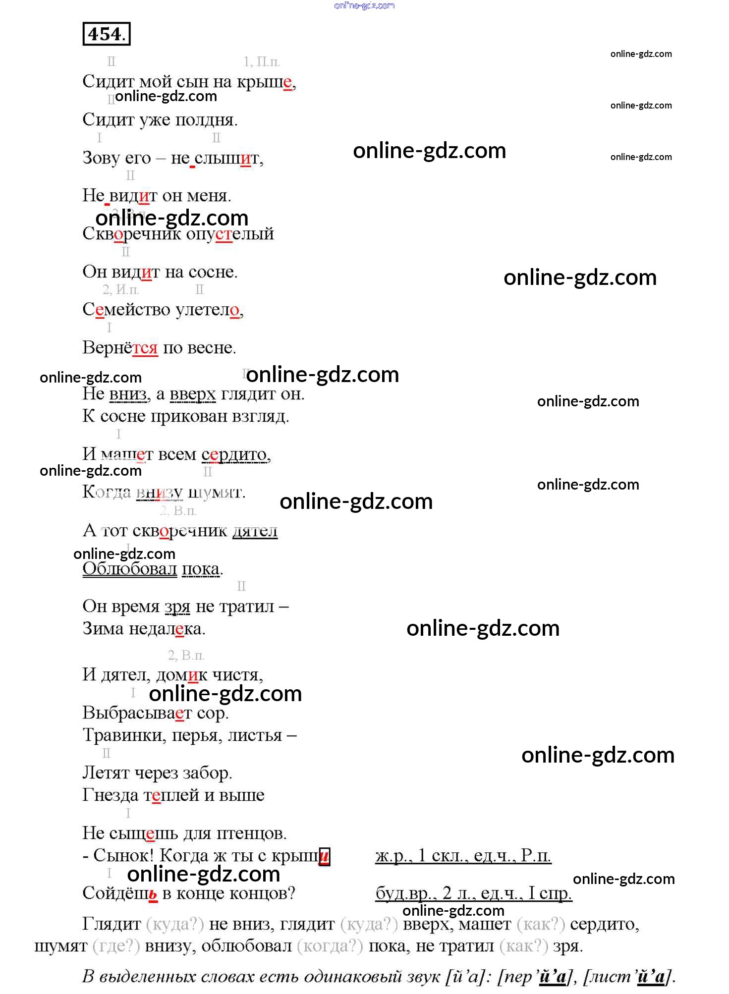 Готовые домашние задания по Русскому языку за 4 класс Учебник Соловейчик, Кузьменко Гармония 2015 - Часть 2. Упражнения 454
