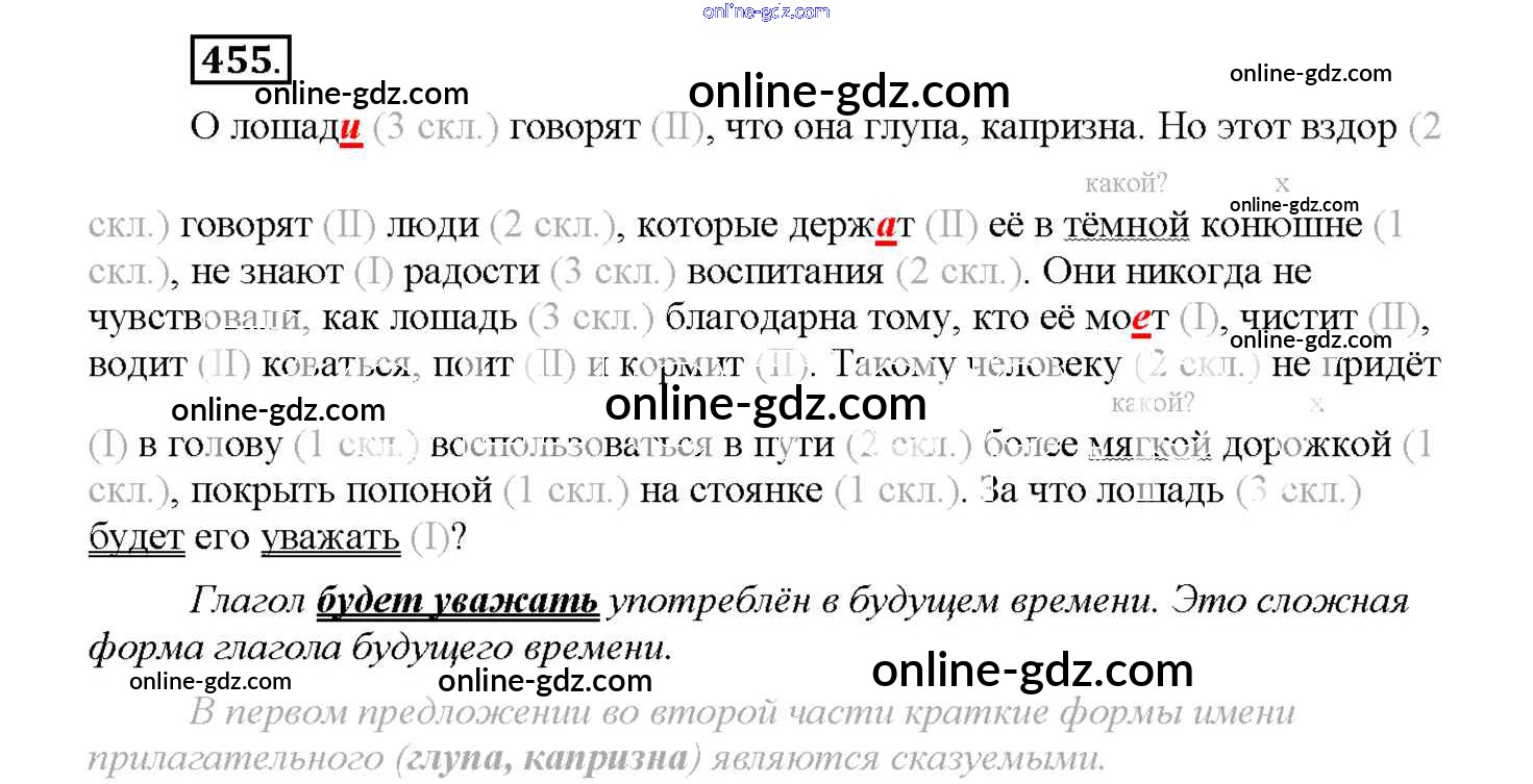 Готовые домашние задания по Русскому языку за 4 класс Учебник Соловейчик, Кузьменко Гармония 2015 - Часть 2. Упражнения 455