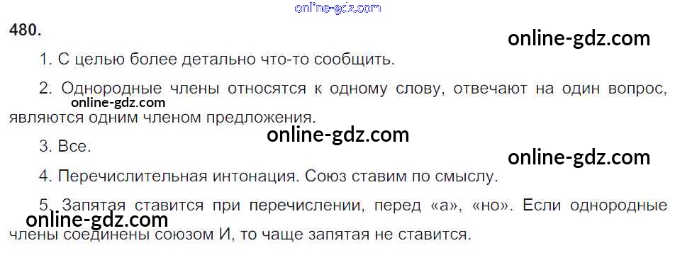 Готовые домашние задания по Русскому языку за 4 класс Учебник Соловейчик, Кузьменко Гармония 2015 - Часть 2. Упражнения 480