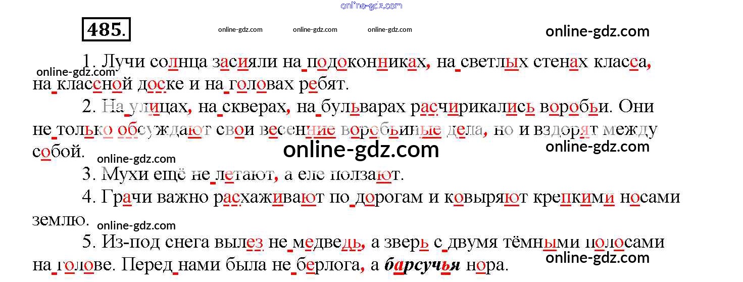 Готовые домашние задания по Русскому языку за 4 класс Учебник Соловейчик, Кузьменко Гармония 2015 - Часть 2. Упражнения 485