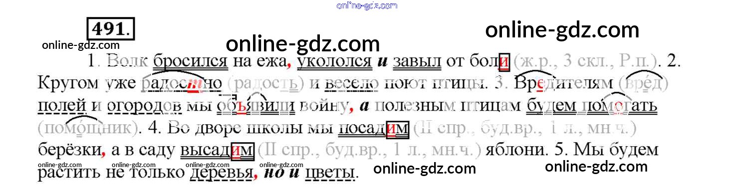 Готовые домашние задания по Русскому языку за 4 класс Учебник Соловейчик, Кузьменко Гармония 2015 - Часть 2. Упражнения 491