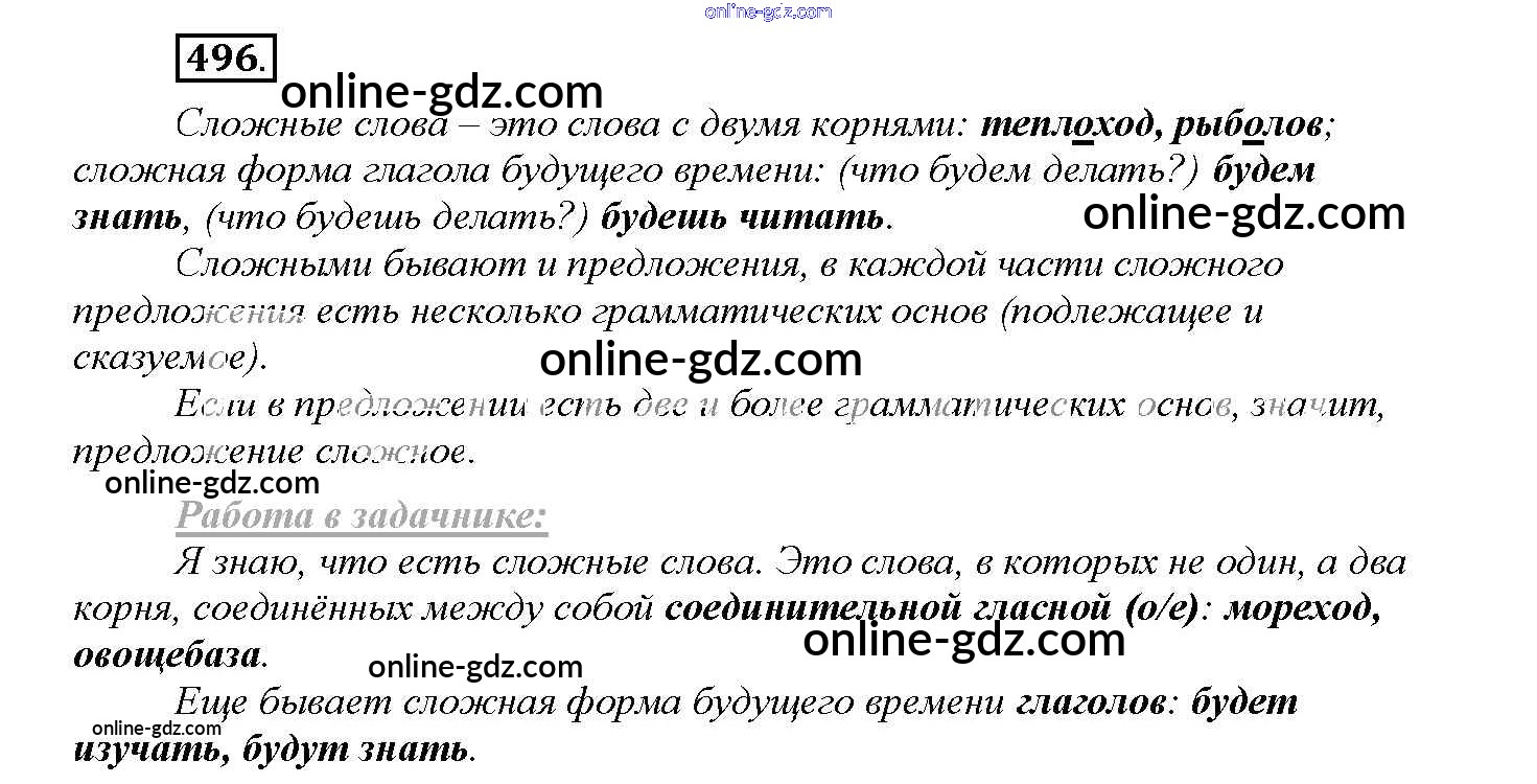 Готовые домашние задания по Русскому языку за 4 класс Учебник Соловейчик, Кузьменко Гармония 2015 - Часть 2. Упражнения 496