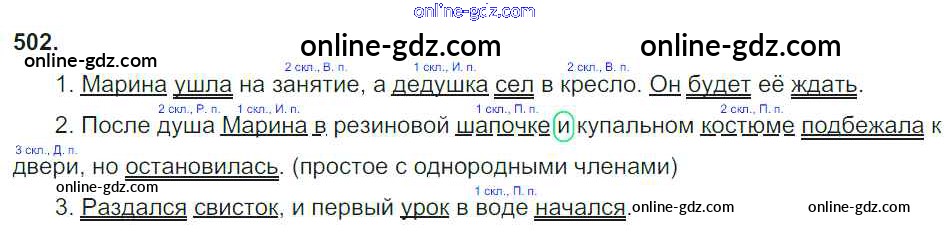 Готовые домашние задания по Русскому языку за 4 класс Учебник Соловейчик, Кузьменко Гармония 2015 - Часть 2. Упражнения 502